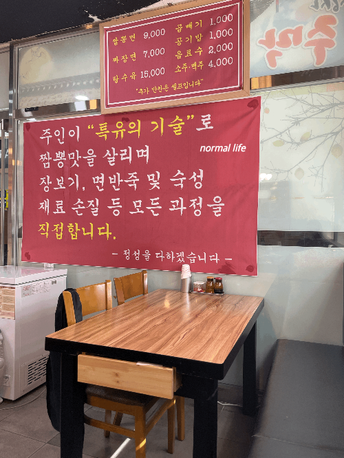 평일은 점심에만 영업을 하고 일요일은 휴무인 #중앙짬뽕은 오전 11시부터 오후 2시 30분까지만 영업을 하지만 재료 소진 시에는 영업을 종료한다고 한다. 보통 평일에는 오후 1시 30분쯤 모든 메뉴 품절로 식사를 할 수 없다고 하고 요즘같이 차가운 바람이 부는 계절 뜨끈한 짬뽕을 찾는 손님들이 많아 짬뽕은 빠르게 품절된다고 하니 중앙짬뽕을 맛보기 위해서는 조금 서둘러야 할 것 같다.