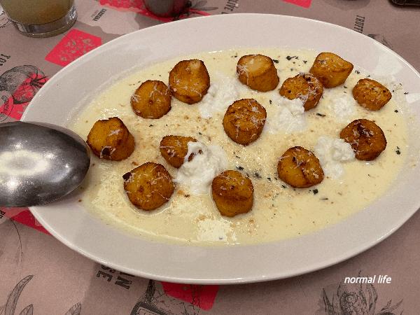 깊고 진한 크림소스의 풍미를 느낄 수 있는 직접 손으로 빚어 만든 수제 뇨끼이다. 페코리노 로마노 치즈, 스트라치아텔라 치즈와 칼칼한 블랙페퍼로 맛을 내 겉은 바삭하고 속은 촉촉한 클래식한 이탈리안 뇨끼를 맛볼 수 있다.