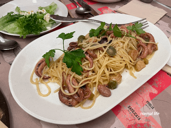 쭈꾸미의 감칠맛과 할라피뇨의 매콤함의 조화가 훌륭한 뽈리오 알리오올리오이다. 담백한 갈릭 오일 베이스로 부드럽고 쫄깃한 쭈꾸미의 식감을 즐길 수 있는 씨푸드파스타로 더플레이스 광화문 SFC점의 파스타 베스트 메뉴 중 하나이다.