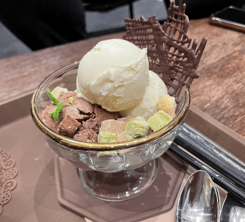 #아이스크림 with 레더라 타투피는 두 가지 맛의 아이스크림을 선택할 수 있으며 견과류가 박혀있어 부드러우면서도 바삭한 다양한 맛의 #레더라 타투피도 함께 맛볼 수 있다. 부드러우면서 풍미 가득한 레더라 초콜릿을 달콤한 아이스크림과 함께 먹으니 입안 가득 행복함을 가득 느낄 수 있었다.