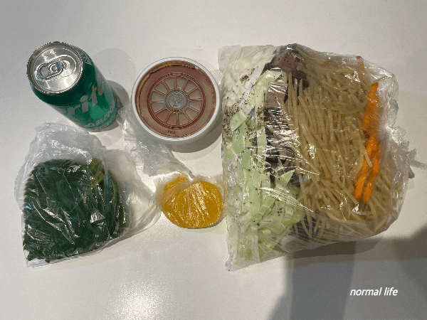 백순대는 신림동 순대타운만의 특유의 분위기 속에서 맛보는 것이 특징인데, 4세 딸아이와 함께 즐기기에는 힘들 것 같아 아쉬움을 뒤로하고 포장하여 집에서 맛보았다. 신림동 백순대가 택배로도 인기가 있다 보니 포장도 아이스박스에 매우 깔끔하게 해 주셨다. 매장에서 사장님이 직접 볶아서 포장해 주시거나, 집에서 직접 볶아 먹을 수 있도록 선택할 수 있는데 나는 집에서 직접 볶아 먹을 수 있도록 포장하였다. 편리하게 맛볼 수 있도록 백순대재료들과 특제 고추장소스, 깻잎, 단무지, 서비스 음료까지 간편하고 편리하게 포장되어 있었다.