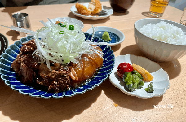 정갈한 일본가정식의 정석을 보여주는 부타가쿠니정식이다. 호호식당만의 특제간장소스로 오랜 시간 은근하게 조린 돼지고기, 무 조림이다. 숙성 돼지고기를 오랜 시간 조리해 굉장히 부드럽고 와사비와 함께 맛보면 더욱 맛있게 맛볼 수 있다. 함께 나온 우메보시와 일본 장아찌도 정갈한 일본가정식의 맛과 멋을 더한다.