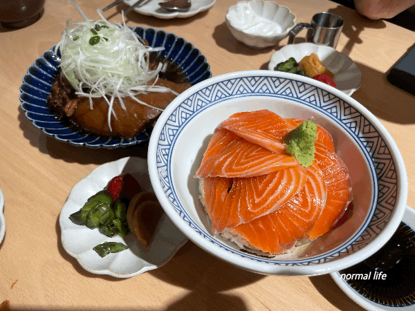 고슬고슬한 흰밥과 탱글탱글한 생연어를 한 그릇에 담아낸 호호식당의 시그니처인 사케동. 당일아침 생연어를 손질해 당일소진을 원칙으로 하며 일본 정통방법으로 위생적으로 손질하여 훈제연어와는 다른 신선한 연어의 맛을 즐길 수 있다.