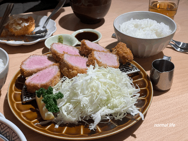 여러 가츠메뉴 중 고민하다 직원분께 추천받아 주문한 히레가츠정식이다. 매일 아침 최고급 국내산 돼지 안심을 염지, 숙성하여 정성스럽게 튀겨낸 돈안심가츠이다. 육즙이 풍부하고 부드러워 호호식당의 베스트메뉴라고 한다. 국내산 쌀을 사용한 고슬고슬하고 찰진 흰밥과 싱싱한 양배추 샐러드와 든든한 한 끼를 완성시킬 수 있다.