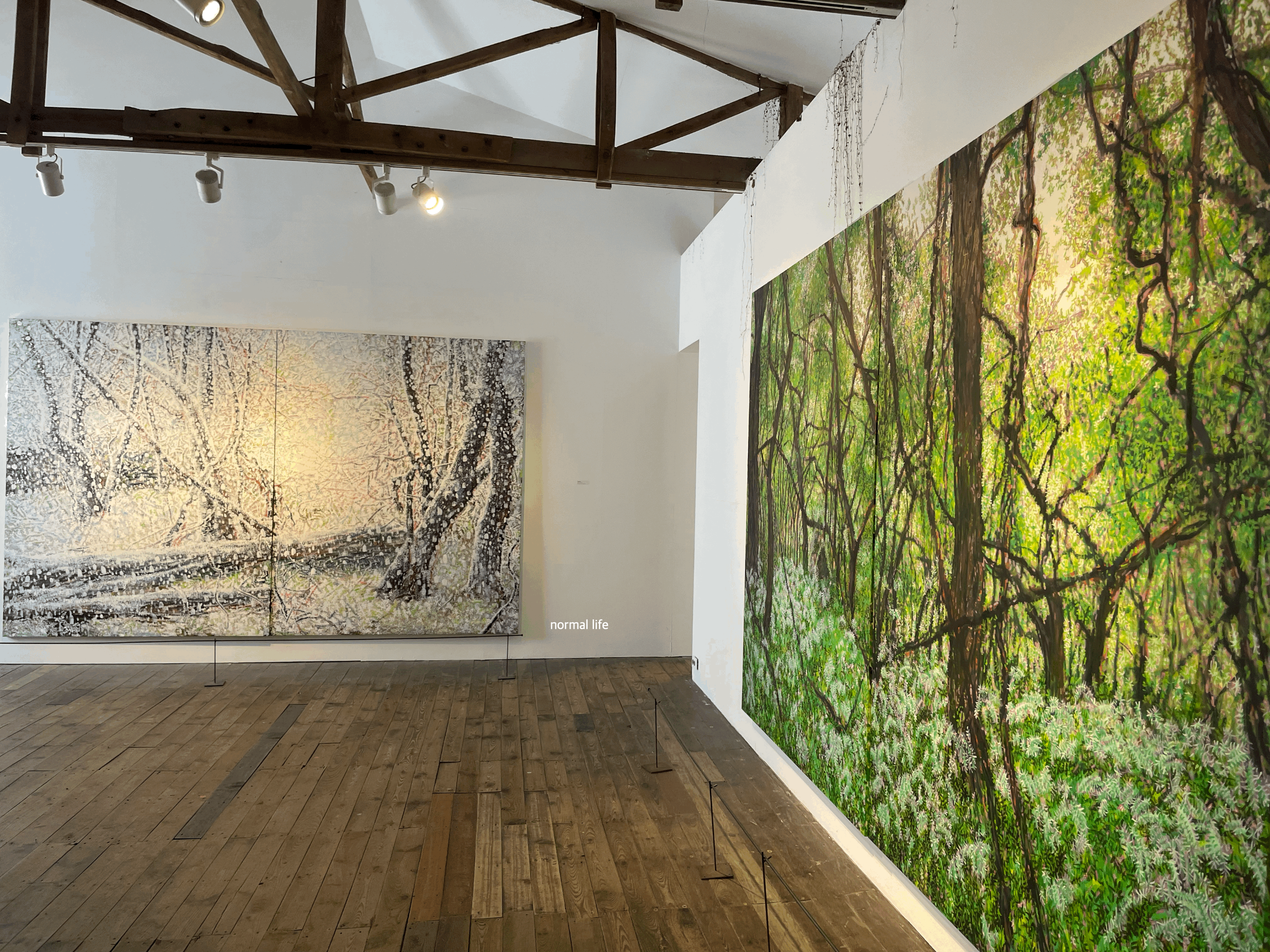 #홍일화 작가는 2019년부터 제주도에서 레시던시를 계기로 제주 방언으로 '나무와 덩굴, 암석이 뒤섞인 덤불이 있는 숲'으로 용암지대에 형성된 야생의 숲 #곶자왈에 관한 작업을 하고 있다고 한다. 얼핏 보면 무질서해 보이지만 서로 다른 형태로 엉켜 붙어 자란 식물들과 얇은 나무의 형태를 띤 덩굴가지들의 서로 공생하며 조화를 이루는 모습이 경이롭다.
