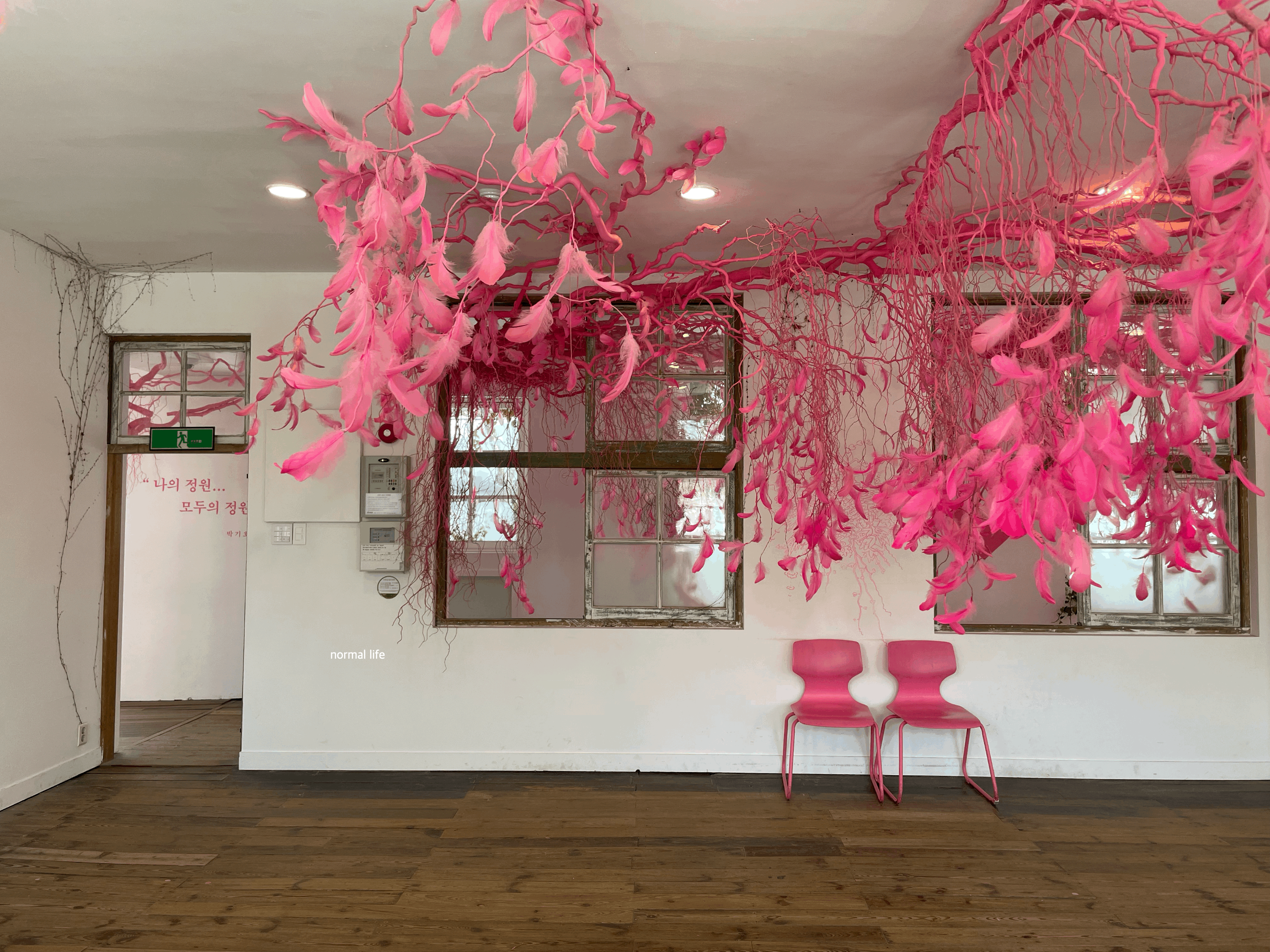 분홍과 파랑, 흰색으로 구분된 박기호 관장의 3개 교실의 전시공간은 인생컷을 남길 수 있는 아미미술관의 핫플레이스이다. 분홍과 파랑의 강렬한 색상의 깃털로 꾸며진 나뭇가지 설치작품은 강렬한 느낌을 주는 공간이다. 공간은 개인의 정체성을 보여주는 창구다. 박기호 관장에 의해 심어지고 가꾸어져 온 식물들은 다양한 형상과 색채로 유희와 상상력을 보여주는 작은 자연이었다.
