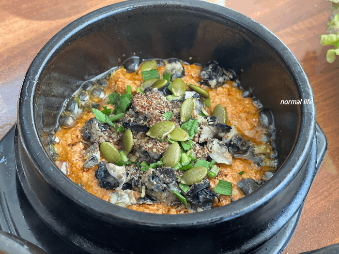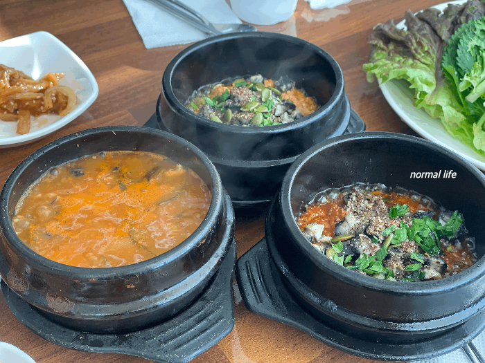 개인적으로 우렁이강쌈장보다는 두부가 들어가고 조금 덜 짠 우렁이쌈장이 맛이 더 좋았다. 처음 맛보았을 때 강렬한 우렁이강쌈장이 맛이 좋았는데 식사를 하다 보니 조금 더 고소하고 은은한 맛의 우렁이쌈장에 손이 더 갔던 것 같다.