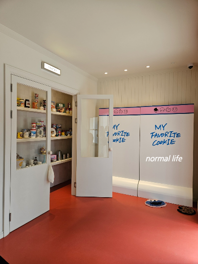 마이페이보릿쿠키는 포장만 할 수 있어 매장 안엔 테이블이나 의자가 없다. 2층은 베이커리 작업실이고 1층은 쿠키 판매하는 곳과 그로서리샵으로 꾸며져 있었다. 그로서리샵이 세트장처럼 예쁘게 꾸며져 있어 사진을 안 찍을 수가 없다. 그로서리샵에는 마이페이보릿쿠키의 굿즈와 스낵, 쿠키, 잼, 캔디 등을 구입할 수 있었다. 이곳의 포장패키지와 굿즈로 사장님의 감각을 알 수 있었다.
