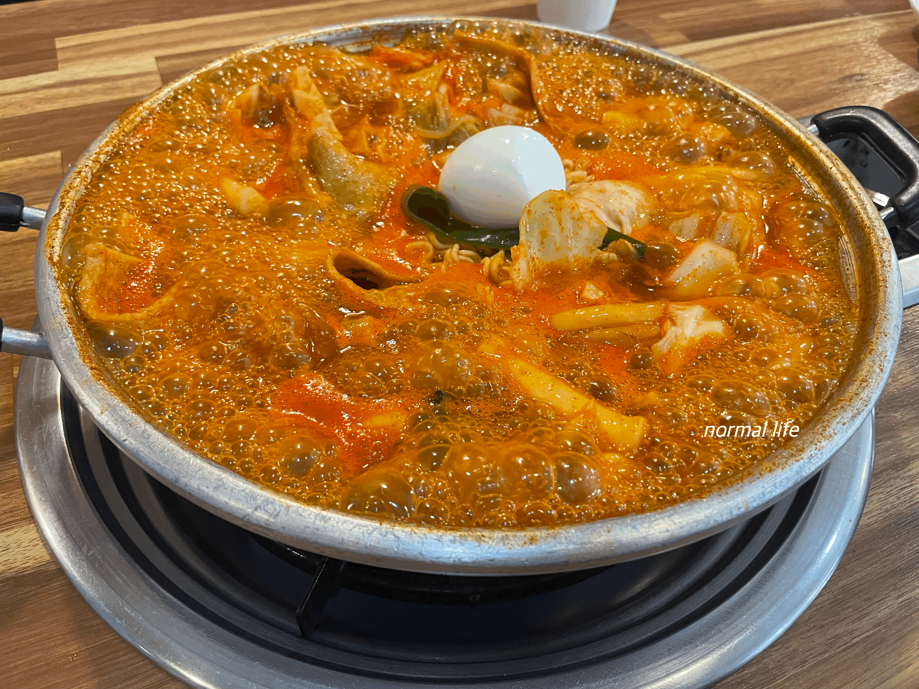 기본즉석떡볶이에는 삶은 계란이 포함되어있지 않아 테이블오더로 삶은 계란 2개를 추가주문하였다. 테이블에서 직접 조려 먹는 즉석떡볶이의 매력이란 끝이 없는 듯했고 추운 겨울에 더더욱 잘 어울리는 메뉴였다. 우리는 중간맛의 매운 단계를 주문하였는데 매운 것을 잘 먹지 못하는 나의 입맛에도 적당한 매운맛과 과하지 않은 달짝지근한 맛이 일품이었다.