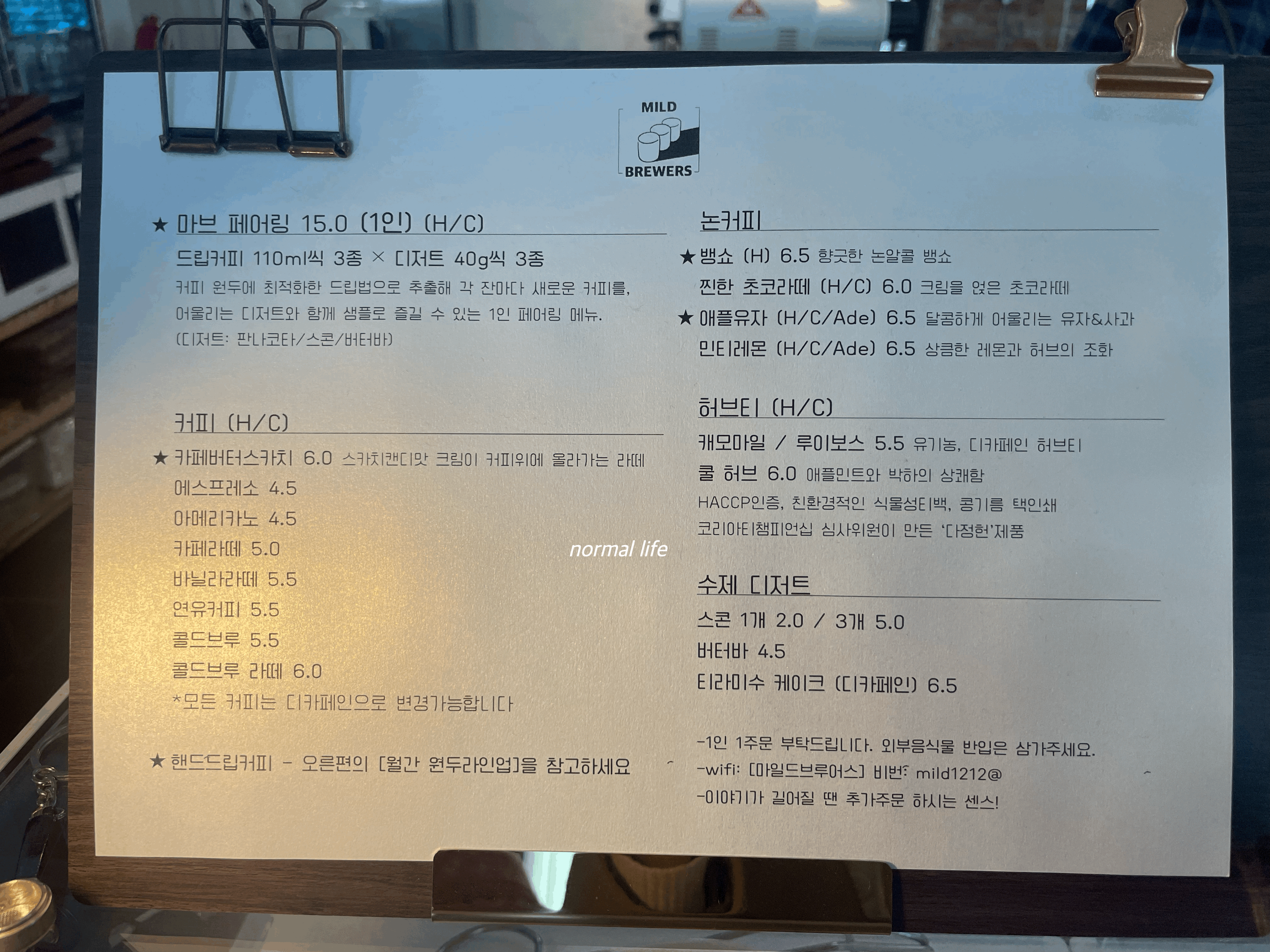 2. 마일드 브루어스 메뉴와 가격