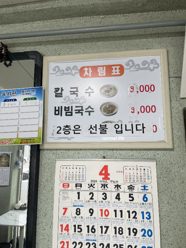2가지 단출한 메뉴판에 당황했지만 현지인 맛집이라 하고 진짜 맛집은 단출한 메뉴로 승부하기 때문에 믿고 주문하였다. 내가 방문하였을 때는 칼국수 9,000원 비빔국수 9,000원 두 가지 메뉴였지만 예전에는 잔치국수도 있었다고 한다.