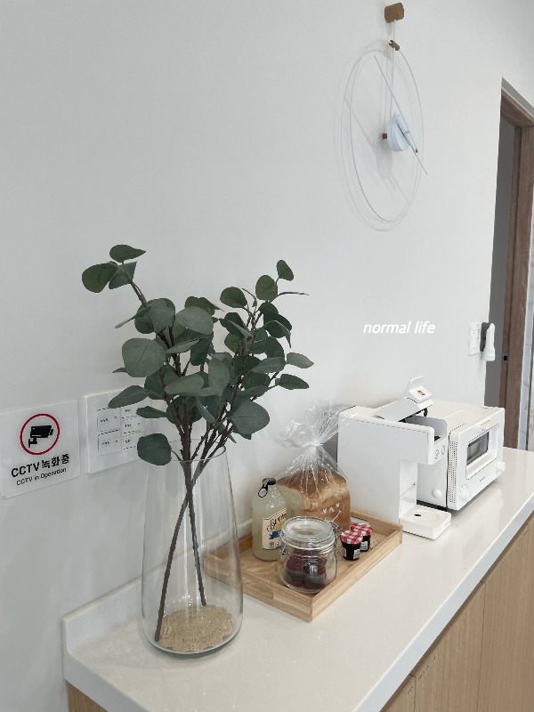 동락풀빌라 체크인 시 일리캡슐 4개, 분다버그 레모네이드 1병, 파리바게트 식빵, 딸기잼 2개가 제공된다. 동락풀빌라는 한적한 시골마을에 위치하고 있어 근처 마트가 없어 서충주 IC 근처 편의점까지 가야 하므로 필요한 먹거리는 꼭 준비하길 추천한다