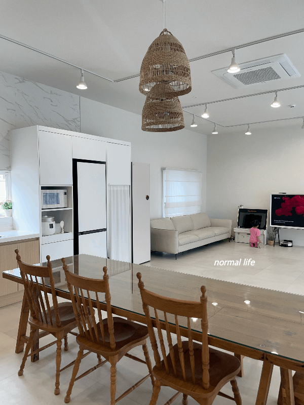 동락풀빌라에 들어서면 큰 창 사이로 들어오는 따뜻한 햇살과 화이트톤의 인테리어, 큼직한 우드 테이블이 누구나 꿈꿔오는 감성 주택살이의 로망을 만날 수 있다.