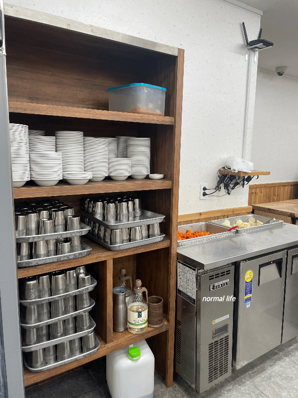 얇은 만두피에 속을 꽉 채워 육즙이 가득하고 극강의 부드러움을 함께 느낄 수 있는 베테랑칼국수의 고기만두이다. 베테랑칼국수만으로는 서운해 테이블마다 만두가 함께 올려져 있었다. 아삭한 건무와 부드러운 당면 그리고 국산 돼지고기가 듬뿍 들어가 있는 고기만두이다. 베테랑칼국수만의 깨끗한 단무지와 고기만두가 사장님이 추천하는 최강 조합이라고 한다.