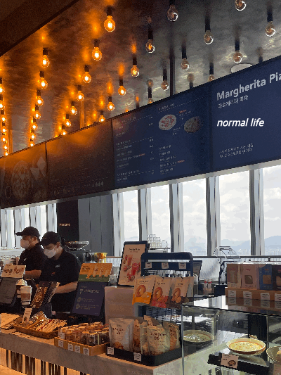 대전 신세계 백화점 엑스포타워 39층에 위치하고 있어 대전 신세계의 오노마호텔 쪽에 주차하고 고층 엘리베이터로 갈아타고 올라오는 것이 조금 편할 것 같다. 매장에 들어서면 시원한 전망과 오픈주방이 눈에 들어온다. 창밖 뷰를 볼 수 있도록 테이블이 배치되어 있어 마음에 드는 자리에 앉아 뷰맛집에서 이탈리아 음식과 커피도 마실 수 있다. 대전 신세계 폴바셋이 오픈하기 전까지는 38층에 위치한 스타벅스가 명소였는데 이제는 폴바셋이 새로운 명소이다.