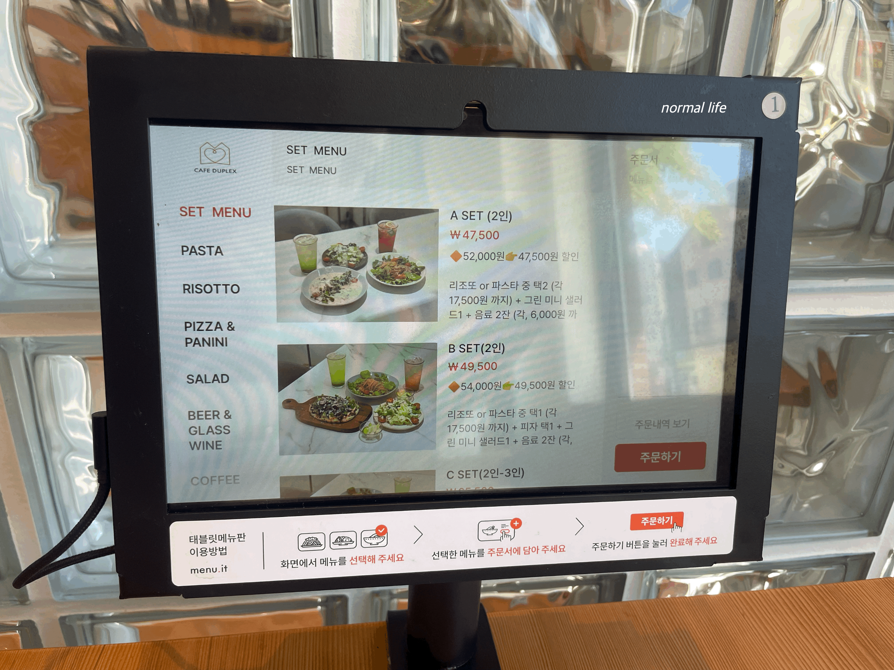 카페듀플렉스는 테이블오더 시스템으로 태블릿 메뉴판을 이용해 주문하고 식사 후 카운터에서 계산하면 된다.