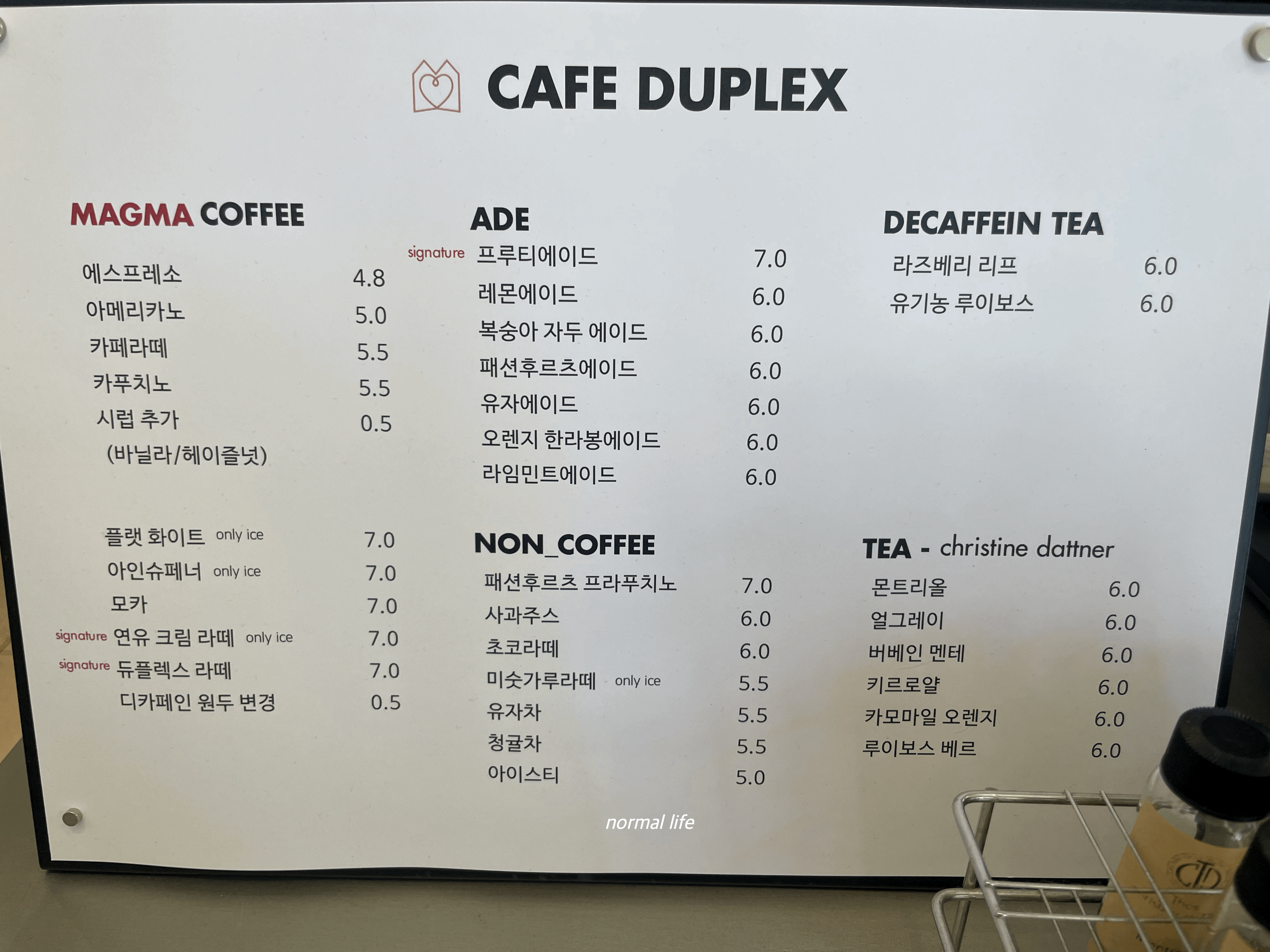 4. 카페듀플렉스 메뉴와 가격