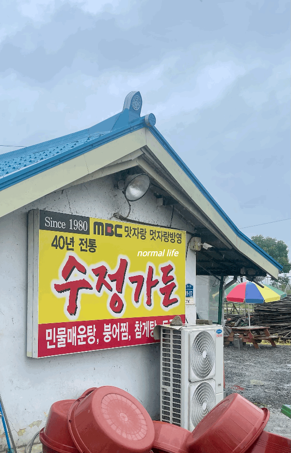 시골집을 개조하여 만든 식당으로 문밖에 나란히 놓인 신발이 시골 할머니댁 사랑방 같은 정겨운 느낌이 드는 수정가든이었다. 식당 내부는 테이블로 되어있어 식사하기 편하였고 44년 노포감성 그대로 살아있어 여름방학 할머니댁에서 식사하는 향수를 불러일으켰다.