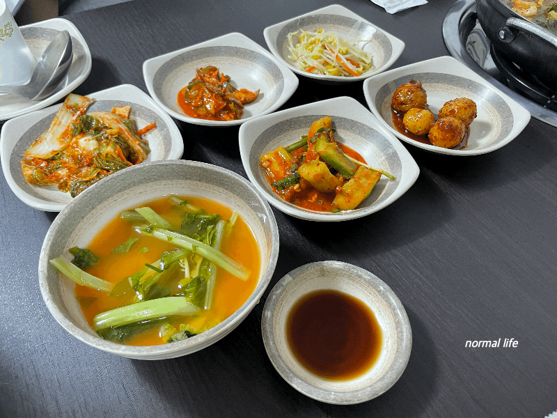 여름 제철을 느낄 수 있는 시원한 열무김치, 갓 버무린 겉절이, 아삭아삭한 오이김치, 간이 잘 밴 쫀득한 감자조림, 여름철 입맛 돋우는 오이지, 고소한 참기름 내 가득한 콩나물무침이 정갈하고 깔끔하게 밑반찬으로 나온다. 제철재료로 만들어진 밑반찬만으로 건강해지는 느낌이었다.