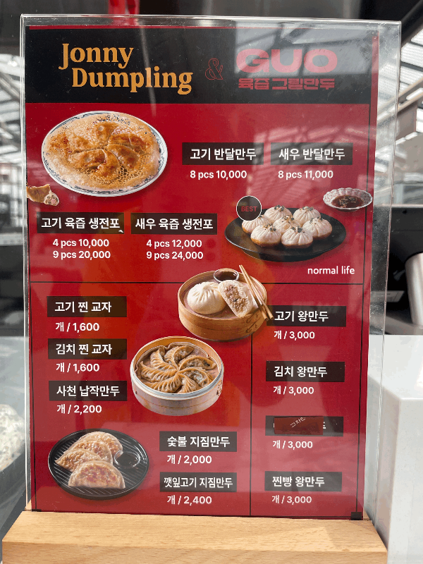 이태원 본점의 오리지널 레시피 그대로 재현하여 이제는 이태원을 방문하지 않고서도 온라인이나 대전신세계 쟈니덤플링&구오에서 만두를 맛볼 수 있게 되었다. 대전신세계 쟈니덤플링&구오의 베스트 메뉴인 #고기육즙생전포 #새우육즙생전포는 4 pcs 10,000원 8 pcs 20,000원이고 고기와 새우 반반도 가능하다.