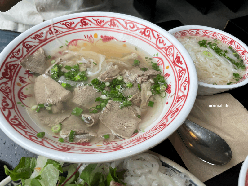 하노이스타일의 진한 육수의 특허받은 보들보들한 생면을 맛볼 수 있는 에머이는 매운 쌀국수, 차돌쌀국수, 양지+차돌쌀국수, 불고기쌀국수 등 다양한 쌀국수를 맛볼 수 있다. 생면이라 주문한 지 얼마 되지 않아 바로 따끈한 쌀국수를 맛볼 수 있었다. 에머이 쌀국수를 맛있게 먹는 방법은 편마늘과 고추를 넣어 맛보면 또 다른 깊고 시원한 맛을 느낄 수 있다. 개인적으로 라임과 고수를 넣어 현지맛 그대로 맛보는 걸 선호한다.