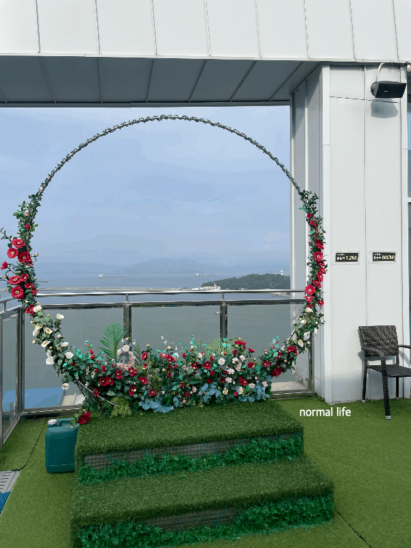 여수 바다가 한눈에 내려다보이는 베네치아 호텔&리조트 루프탑풀 포토존이 준비되어있다.
