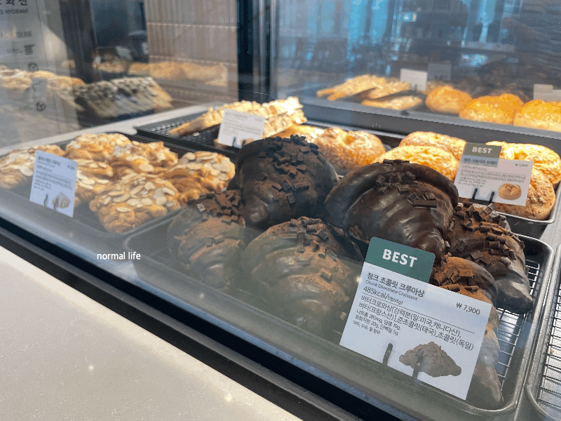 스타벅스 스페셜 스토어답게 더여수돌산 DT점은 다른 매장과 다르게 다양하고 이색적인 베이커리들이 준비되어 있었다. 온리 스타벅스 더여수돌산 DT점에서만 맛볼 수 있는 스페셜 #쑥 품은 큐브 브레드 9,500원 #부드러운 쑥팥 생크림롤 8,500원 갓 구워낸 큼직하고 먹음직스러운 #AOP버터 크루아상 4,900원 베스트 메뉴인 #청크 초콜릿 크루아상 7,900원 #솔티드 카라멜 팔미까레 6,500원 등 다양하고 먹음직스러운 베이커리들이 준비되어 있다.
